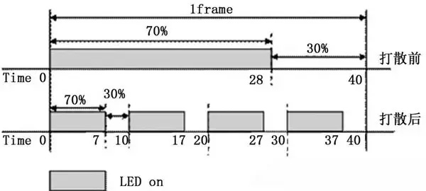 蜜桃视频免费观看知道LED顯示屏幾個核心的部件,如LED開關電源、LED驅動芯片、LED燈珠等,針對LED顯示屏的刷新頻率和灰度等級,LED驅動芯片直接決定了LED顯示屏在視覺刷新頻率、灰度等級的表現。在目前LED驅動芯片之中,最高新的技術為“ScrambledPWM(S-PWM)技術”,S-PWM技術是改進傳統脈波寬度調變(PWM)的技術,其將一個影像導通的時間分散成數個較短的導通時間,以增加整體的視覺更新率。更進一步說明,新一代的LED驅動芯片所內建的S-PWM技術,能將原本每幀(frame)計數一次(LED晶粒ON→LED晶粒OFF)的方式,平均打散成多次計數,且每個打散的等份,皆可維持原先未打散前的On/Off比例,如下圖所示。